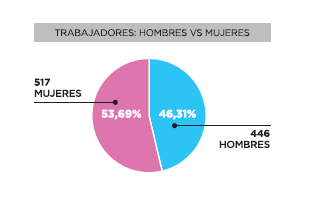 - El 60% de los trabajadores fijos son hombres, el 40% mujeres